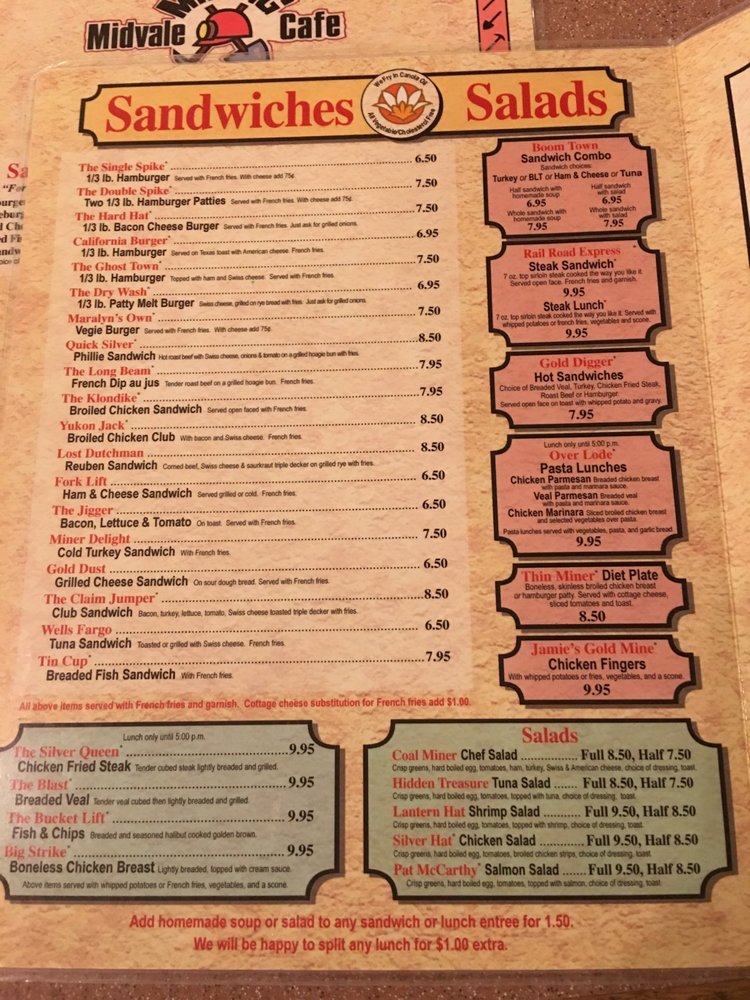 Midvale Mining Cafe & Catering Menu